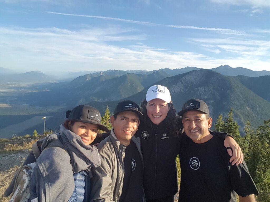 Three general managers of Fairtrade cooperatives visit the Kicking Horse Coffee team in Invermere, British Columbia. (Left to right) Griselda from UCASJRC in Nicaragua, Javier from Sol y Café in Peru, Maddie from Kicking Horse Coffee, and Rodolfo from COMSA in Honduras. The visit was a great opportunity to have the general managers learn from each other’s challenges and learnings and for everyone to cup and calibrate on quality.